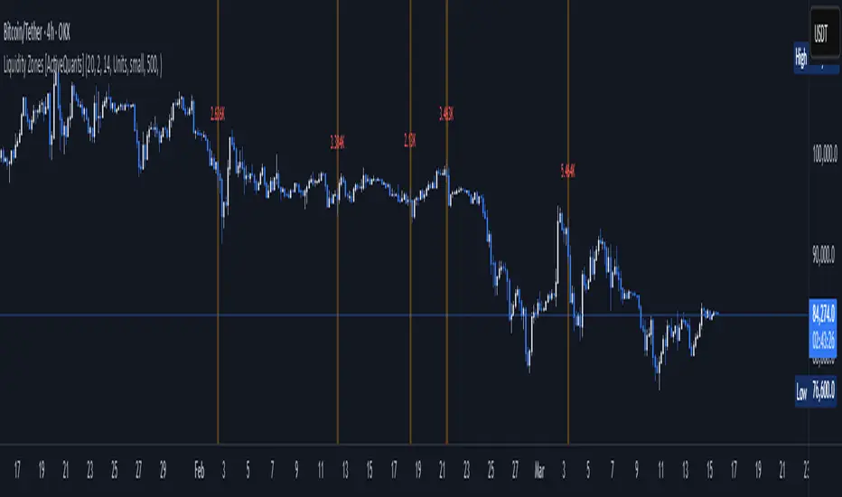 The Liquidity Zones indicator detects price areas where high trading volume coincides with below-average volatility, critical zones where large players often accumulate or distribute positions. Ideal for spotting potential reversal points and strategic liquidity pools.