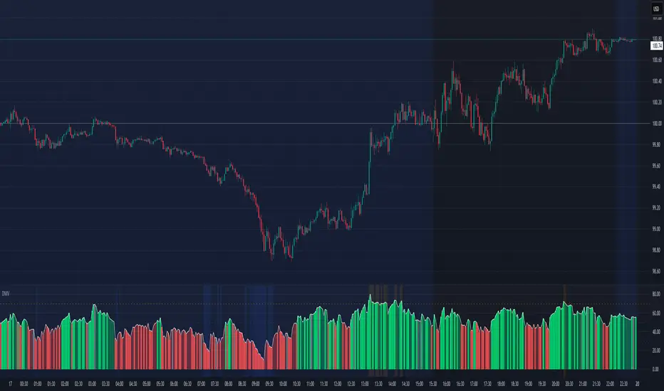 This visual approach offers a clearer perspective on momentum dynamics by replacing the traditional single-line display with color-coded columns. The conditional coloring instantly reveals whether momentum is strengthening or weakening around a chosen midpoint, making trend shifts and fading pressure easier to interpret at a glance. It helps reduce visual noise and allows for quicker, more intuitive analysis of market behavior.