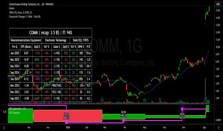 Financial Change % Table which includes revenue , operating profit and earning per share . compares the financial data with previous quarter QoQ and previous year YoY . and shows the change in %.