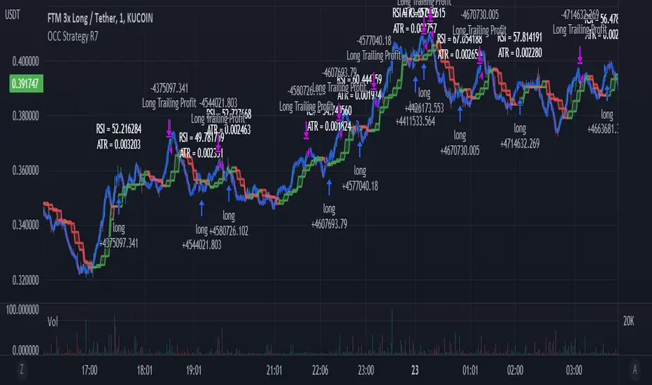 I have also added a trailing stop and created a fixed stop loss as seems to perform better than the original occ strategy. The original one seemed to repaint enough that it would close too quickly and not give the posiition enough time to become profitable. In certain cases where there was a large move, it would perform well, but for the most part the trades would not close profitably even though the backtest said that it did - probably due to the delay in execution and pinescript not having a confirmation on what the actual position price was.