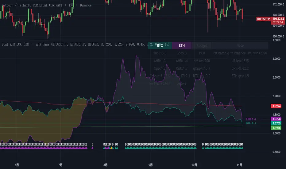 A panel indicator designed for dual-asset BTC/ETH DCA (Dollar Cost Averaging) decisions.