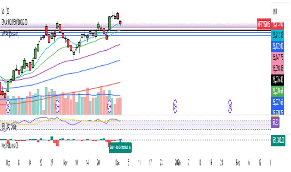 -This indicator only shows Net Futures open interest, as Tradingview only provides Open Interest for Futures contracts (in pinescript) and updates every 3 Minutes (according to the rule of National Stock Exchange)