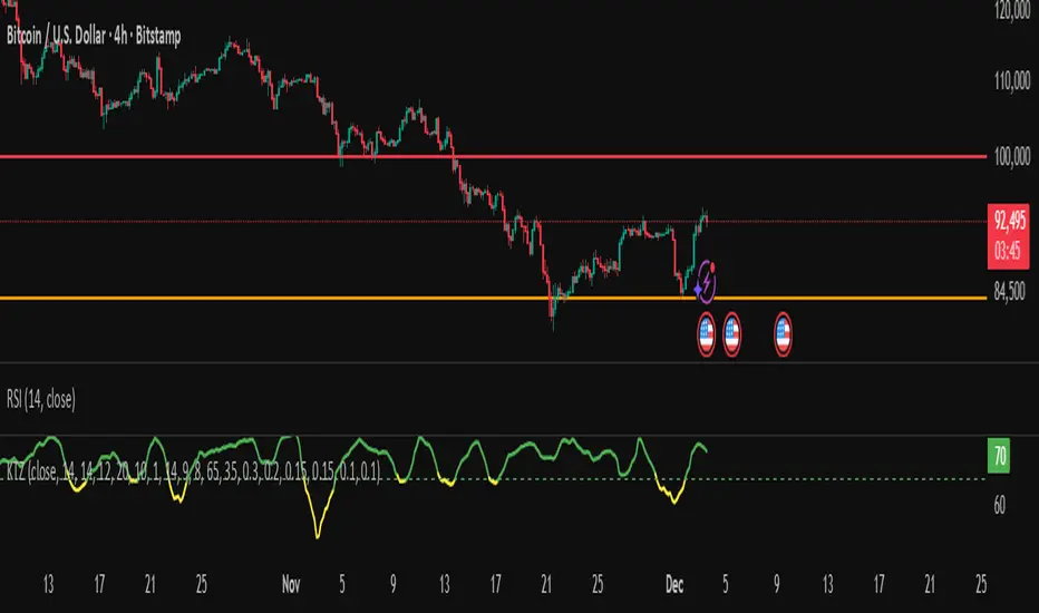 The indicator models two competing cognitive systems that exist in traders' decision-making processes — the trend-following mindset and the counter-trend mindset. Markets naturally oscillate between dominance of these two groups, creating cycles of persistent trending behavior followed by periods of strong reversals.