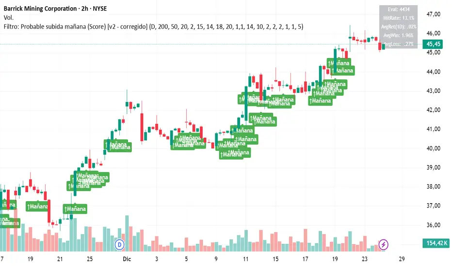 Filtro Probable subida basado en indicadores de tendencia y pullback