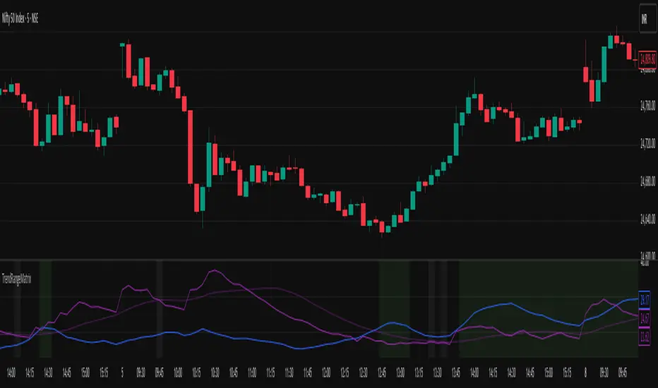 This indicator is designed to help you quickly identify whether the Nifty market is trending, ranging, or preparing for a breakout by combining three volatility and trend-strength measures: