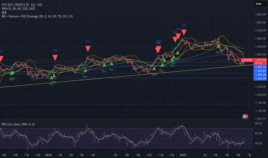 This Pine Script indicator, designed for TradingView, overlays buy and sell signals directly onto your price chart. It combines three popular technical analysis tools: Bollinger Bands (BB), Volume, and the Relative Strength Index (RSI) to generate more robust trading signals.