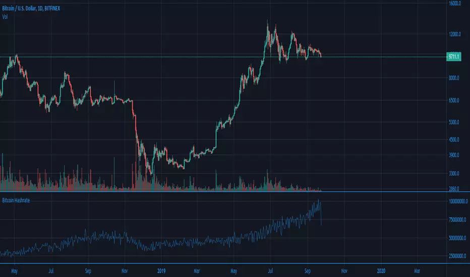 This indicator shows Bitcoin Hashrate. Have options to toggle line/trend view, log on/off and smoothing for line view.