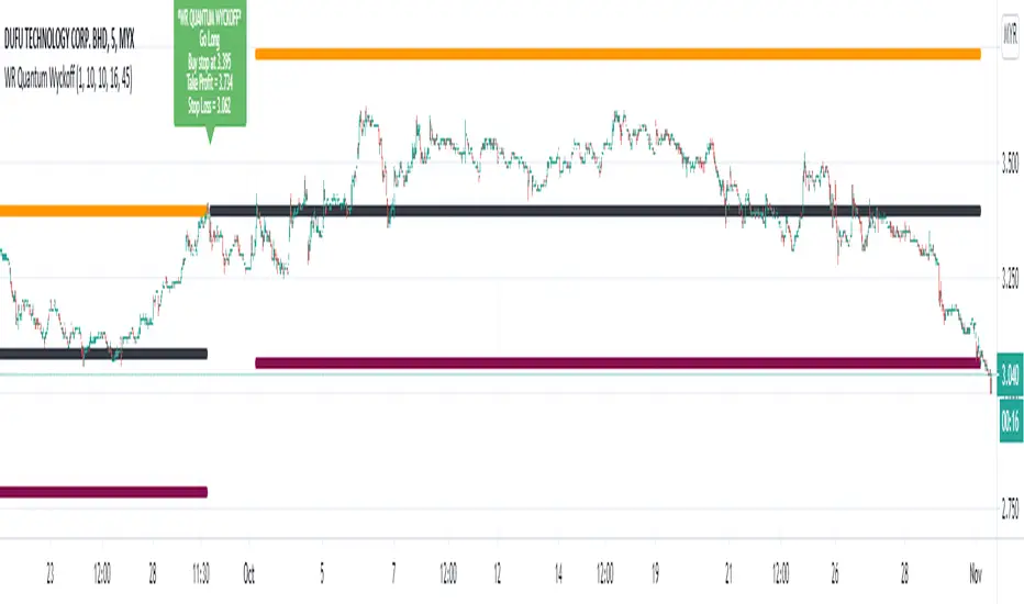 The script will identify accumulation candle (box) at specific timeframe and will advice entry value and calculate advice take profit and stop loss based on % settable in the preset.