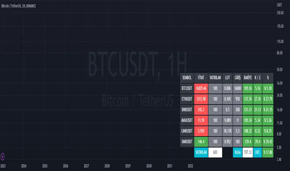 Ayarlardan semboller değiştirilebilir. Sembolün tabloda görünebilmesi için "giriş fiyatı" ve "yatırılan tutar" kutucuklarını doldurmanız gerekir.