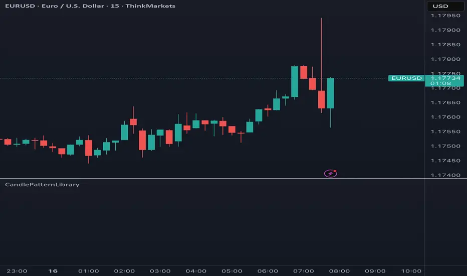 A comprehensive and easy-to-use Pine Script™ library for detecting single, two, and three-candle patterns. This library provides detailed pattern analysis including size classification, direction validation, and specific pattern identification.