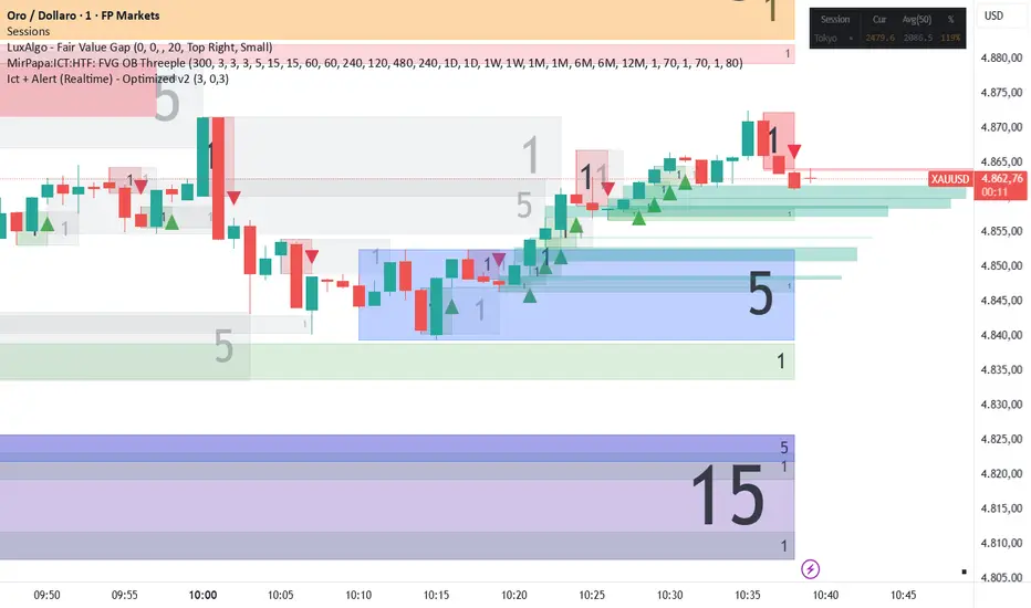 This indicator implements the ICT (Inner Circle Trader) strategy using Fair Order Blocks (FOB) to identify demand and supply zones in the market. Optimized for XAUUSD (Gold) trading with real-time alerts.