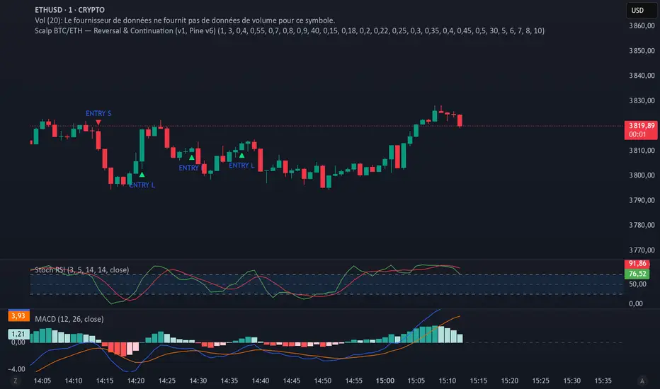 Scalp BTC/ETH — Reversal & Continuation (v1, Pine v6)