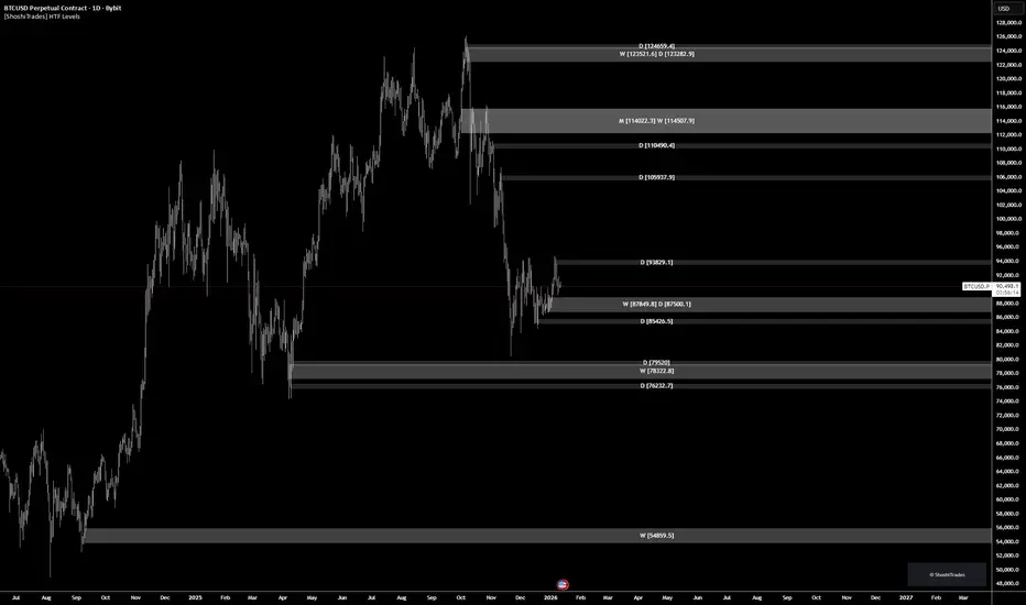 [ShoshiTrades] HTF Levels is a clean, lightweight multi-timeframe HTF level marker that automatically plots key “reaction” levels from 4H / Daily / Weekly / Monthly candles directly on your chart.