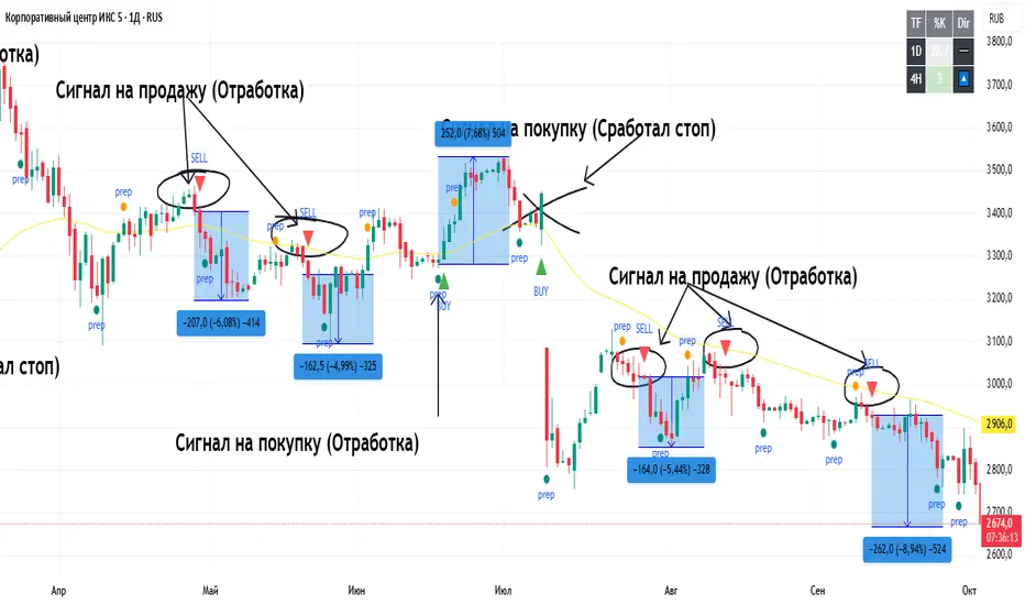 This is our first indicator that will give signals for buying and selling (With the possibility of setting (Alert). The indicator is optimized for the senior TF (1D and 4h). Signals are given automatically after the closing of the candle.