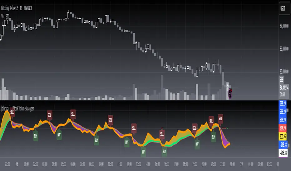 OVERVIEW The [blackcat] L1 Stock Volume Analyzer is a TradingView script designed to provide comprehensive analysis of stock volumes through various indicators like active buying/selling volume, bull/bear price levels, and turnover rates. It also includes visualizations such as candlestick plots and fills to represent different market conditions and potential trading signals.FEATURES