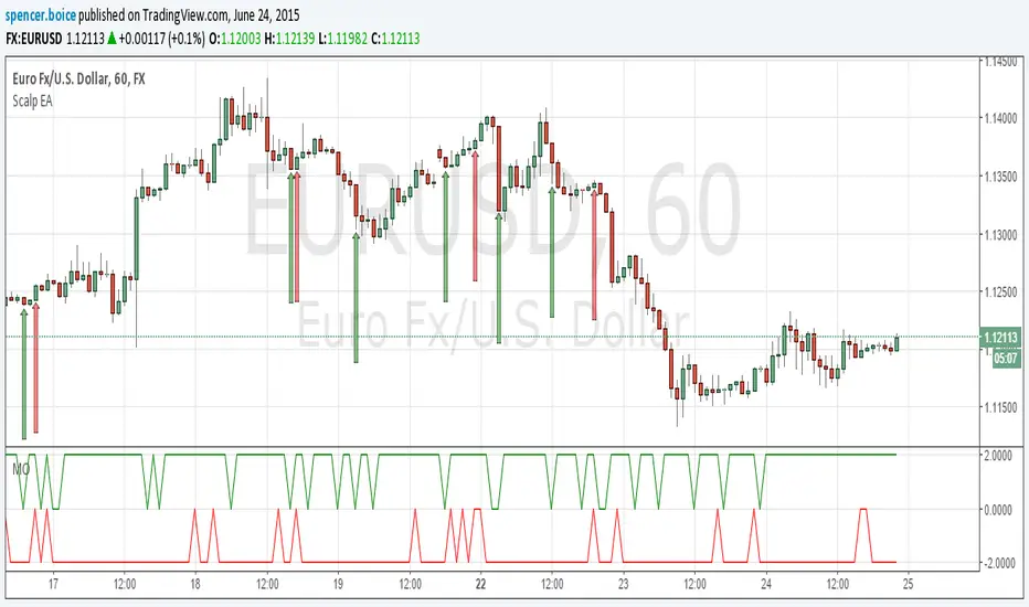 So I have written this indicator based upon the percentages of the High and the Low of the candlestick with respect to the open price. This indicator by no means tries to find top's and bottom's;however, it does find good opportunities for 5-20 pips reversals or continuations. The signal is provided without delay and should only be based upon the closing of the candle. For example, at open- the indicator will tell you "buy, sell, or remain flat" but you should only buy or sell when the candle has completely closed.