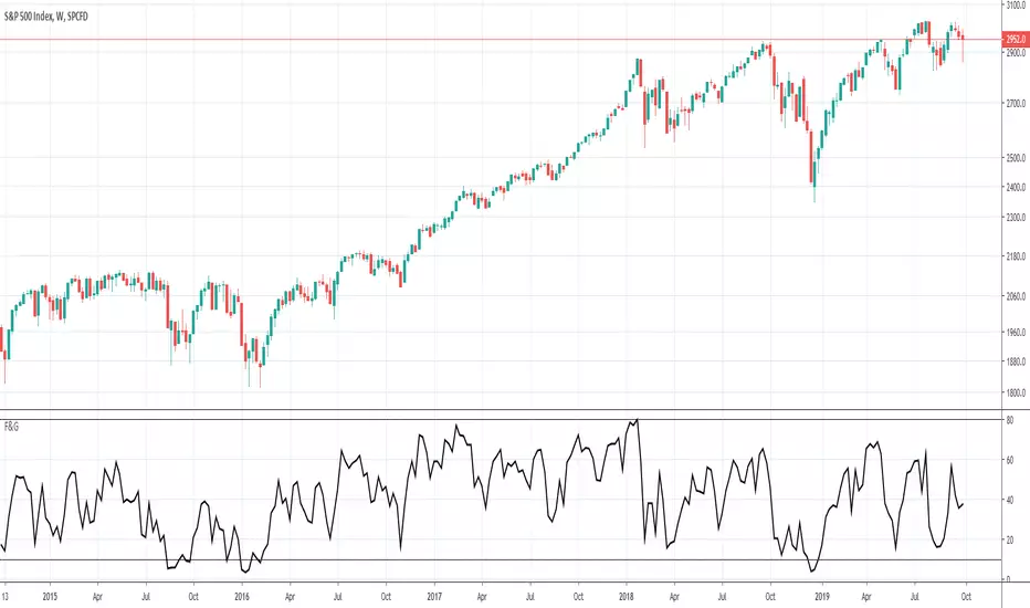 Explanation: Extreme index values (e. g. <10, >80) can be a signal for a turnaround because there are not much buyers (>80, too much greed) or sellers (<10, too much fear) left.