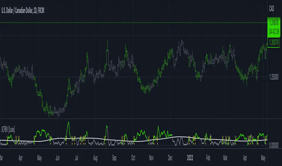 JCFBaux [Loxx] is a volatility indicator that is used to detect early volatility spikes. To be used in conjunction with other momentum indicators for confluence. A Jurik-filtered signal line is included to provide a cutoff for when volatility is low. The JCFBaux is also used to calculate Jurik's "Composite Fractal Behavior". This is a directionless indicator. Many advanced traders will use JCFBaux as a drop in replacement for ADX DI.