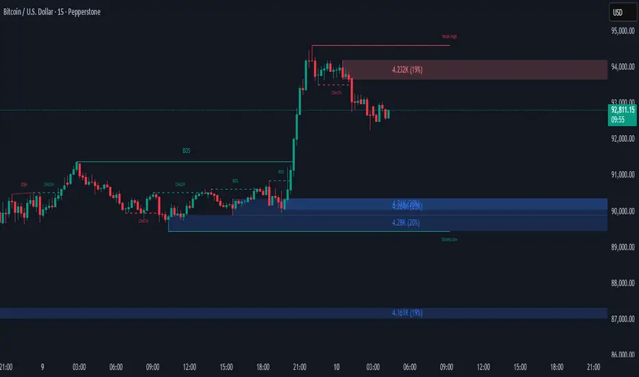 A comprehensive Smart Money Concepts (SMC) indicator designed to identify institutional trading behavior and market structure shifts. This tool helps traders align with "smart money" by detecting key supply and demand zones, structural breaks, and liquidity patterns.