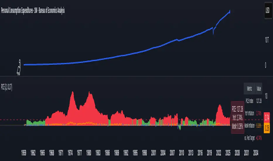 - Year-over-Year (YoY): Histogram bars showing annual PCE inflation