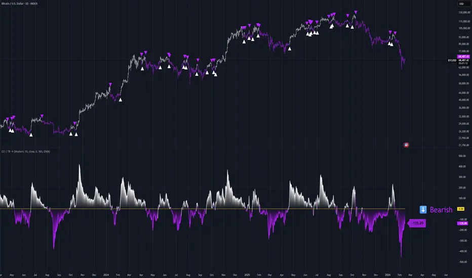 Commodity Channel Index - CCI | TR is a versatile momentum oscillator that measures the current price level relative to an average price over a specified period. Developed by Tiagorocha1989, this enhanced version of Donald Lambert's classic CCI indicator offers dual-mode operation with moving average customization and comprehensive visual features, helping traders identify overbought and oversold conditions, detect trend strength, and generate clear entry and exit signals.