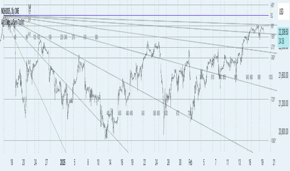 The "AlgoCados x Gann Toolkit Analysis" is an advanced TradingView indicator combining the principles of W.D. Gann’s methodologies with the power of custom anchor points and time cycles. Tailored for traders seeking precision in market timing and price-level analysis, this toolkit integrates the Anchored Square of 9, customizable Gann Fans, and Time cycles. It offers unparalleled flexibility, allowing users to apply Gann’s techniques across different market assets and timeframes by squaring the chart, providing insights into support, resistance, and potential trend reversals.