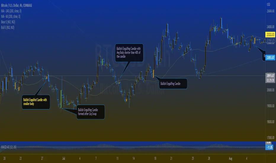 This is not like any other Bullish Engulfing candle indicator present on TV. There are some special rules that are being used to identify specific engulfing candles.