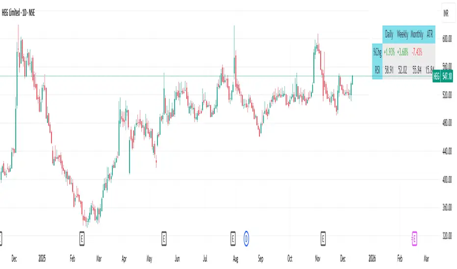 This indicator provides a comprehensive, at-a-glance dashboard displaying key technical metrics across multiple timeframes: Daily, Weekly, and Monthly. It tracks Price Change Percentage, Relative Strength Index (RSI), and Average True Range (ATR) for each timeframe, helping traders quickly assess market trends, momentum, and volatility in one view.