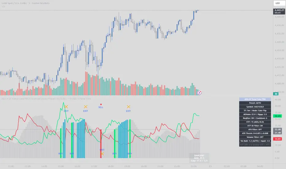 - Adaptive DI Gap (volatility-based adjustment using ATR/Close)