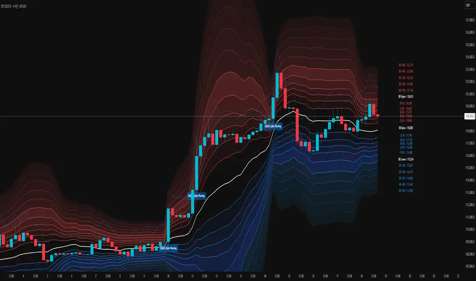 52SIGNAL RECIPE Bollinger Bands & Fibonacci Spike Signal Matrix는 볼린저 밴드, 피보나치 레벨, ATR 기반 스파이크 신호(상방/하방 압력 감지)를 결합한 고급 멀티 밴드 인디케이터입니다.