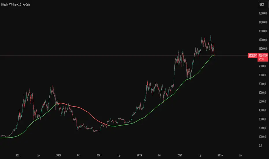 4. If the 2W candle closed *below* the 350 SMA, the line is colored RED.