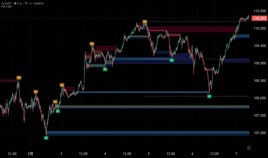 Enter the trade as soon as the HA-CBS signal is confirmed (HA Close breaks the structure with an FVG). This captures the immediate momentum as a new supply/demand imbalance is established. - Strategy B: The Mitigation Entry (Conservative)