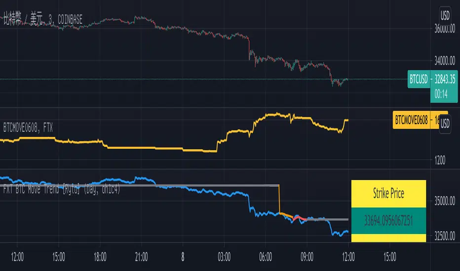 This indicator helps intuitively see the trend between FTX move contract's strike price (Daily or Weekly) and the index price of BTC.