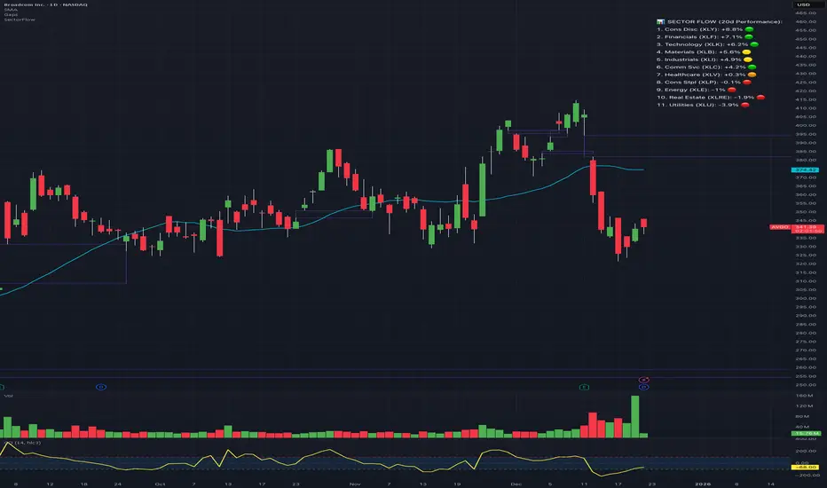 Sector Flow Analysis - Track market leadership and rotation across 11 major sector ETFs with real-time performance rankings.