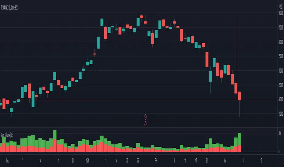 Daily Short Volume shows short volume (red) and total volume (green). This can be helpful in determining a build up of short interest before a crash (or squeeze), or if the mark up of a stock is from short covering or legitimate buyers.