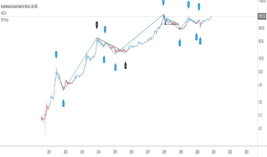 Added asterisks to show an unconfirmed pivot. Because the indicator uses information from higher timeframes, the status of the higher timeframe could change and the pivot could potentially be removed. To show that a pivot is not confirmed, you will see asterisks on the label. IE: *2* or *Minor*. Once the higher timeframe closes the label will show without this.