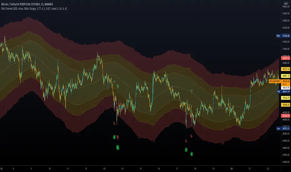 Each level will apply the value on the moving average to get the level bands. All default numbers are from the Fibonacci sequence