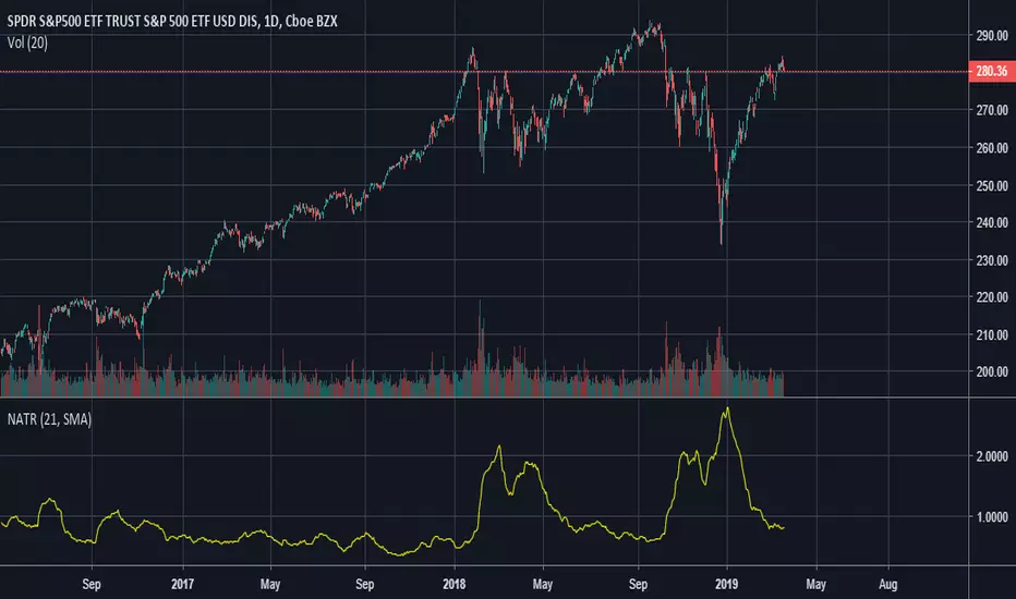 This is a Normalized ATR, which means it displays ATR as a percentage instead of absolute price. For example, a value of 1 indicates a true range of 1% in a given period.