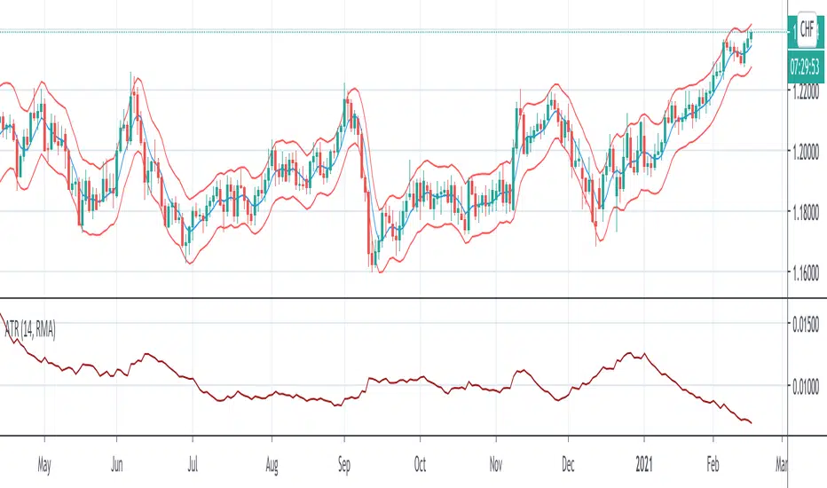 Arnaud Legoux Moving Average With ATR Bands to get an idea of the volatility.
