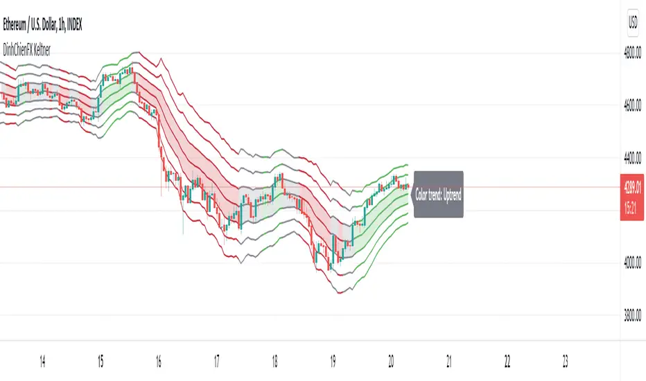 1. Color the 3 lines Basis, Upper, Lower of the Keltner channel