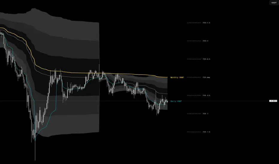 It’s one of the tools I use frequently. Staying within traditional market flow, and reflecting my preference for top-down analysis, this indicator allows you to view LTF, MTF, and HTF levels simultaneously. Depending on the chart timeframe, the higher main line and lower main line are displayed automatically. To improve visibility, previous key levels are positioned only toward the future side (to the right) of the chart. Additionally, you can toggle the bands on or off, allowing you to display only the previous key levels when needed.