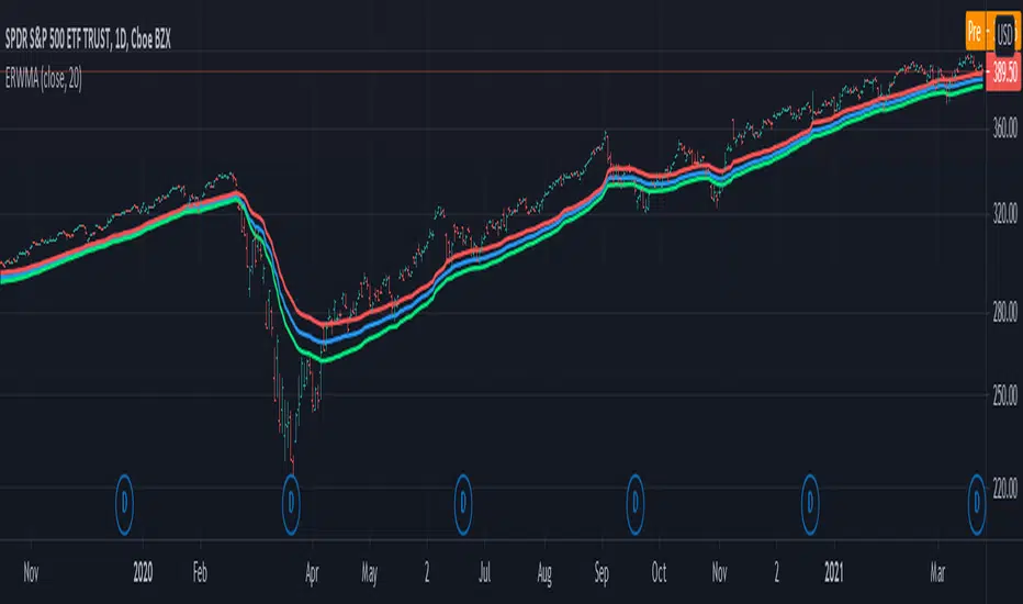 This indicator is similar to the Elastic Volume Weighted Moving Average, except it uses True Range instead of Volume.