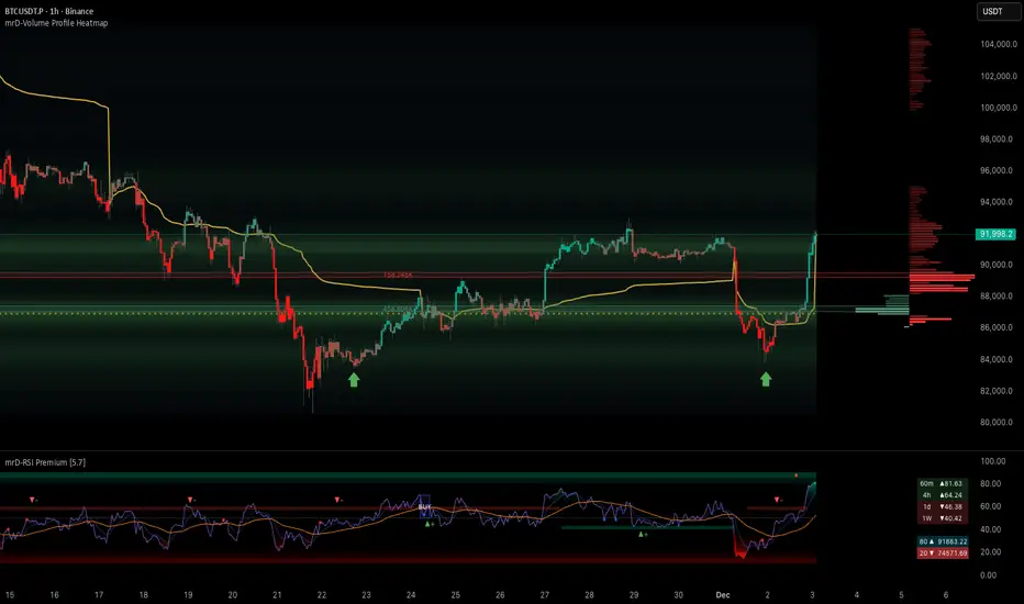 • Custom heatmap visualization engine with adaptive gradient calculation based on volume-weighted price distribution across multiple timeframes