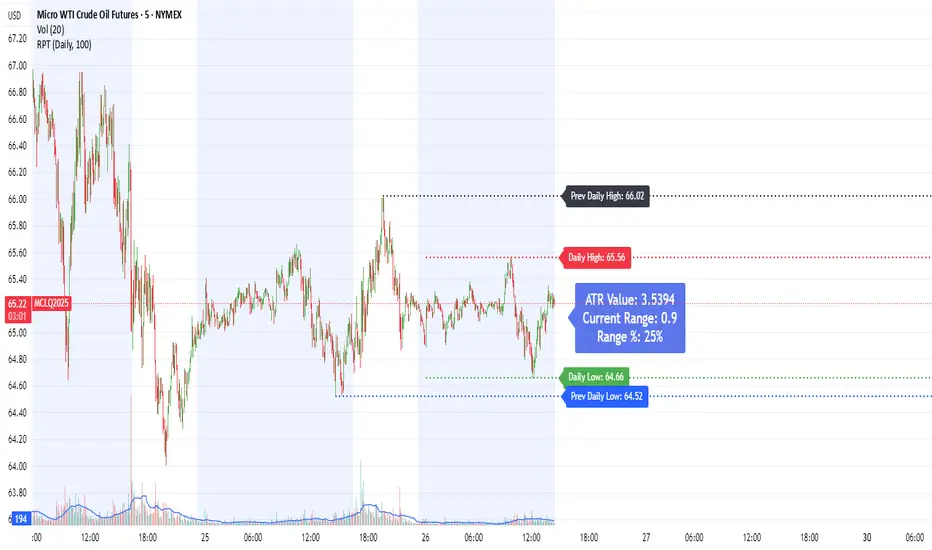 The indicator calculates the current range of the selected time frame (e.g., Daily), which is: