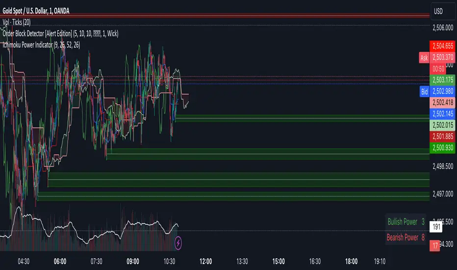 The Ichimoku Power Indicator is an advanced tool that combines the traditional Ichimoku Cloud system with a unique power ranking mechanism. This indicator provides traders with a comprehensive view of market trends and potential reversal points, all while quantifying the strength of bullish and bearish signals.
