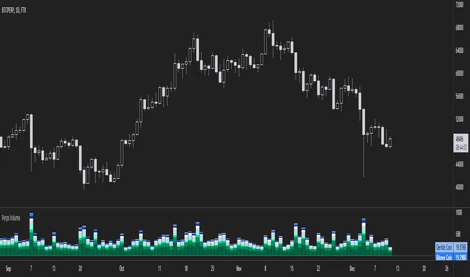 An aggregated crypto perpetual swap contracts volume indicator that works both for BTC and ETH.