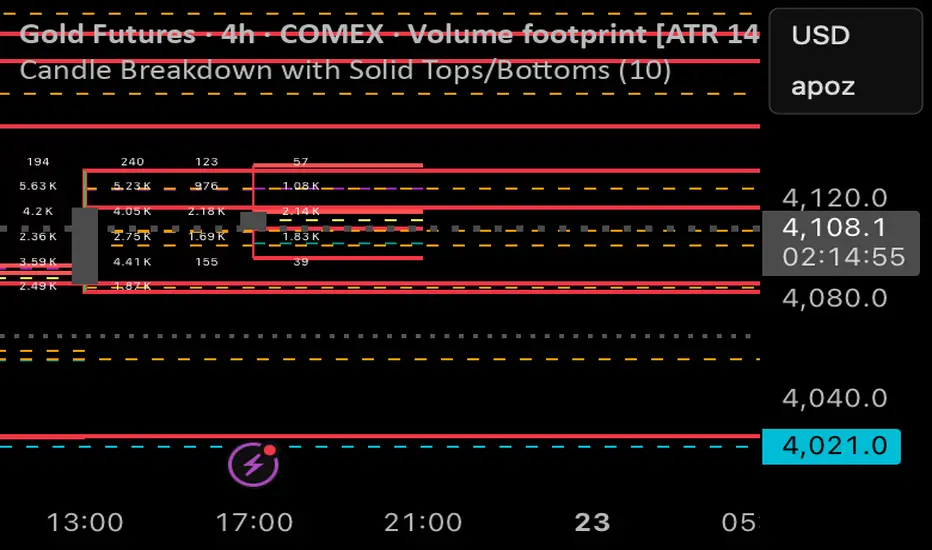 candle section off. high,mid,low of top of wick, body of candle, bottom wick and entire candle