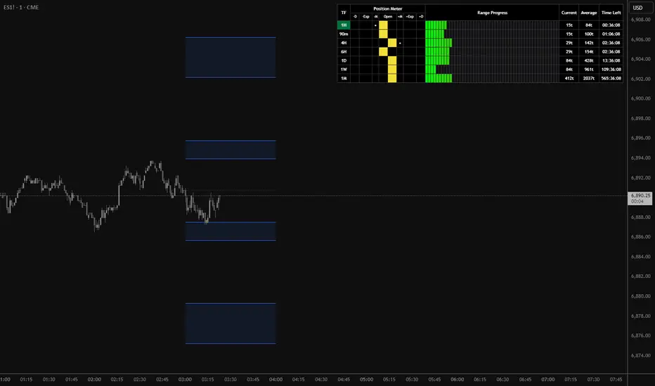By analyzing over 17 years of ES (ES1!) historical OHLC data externally in Python, this script calculates the average (mean) and typical (median) extent of these movements. These statistical insights are then used to project key levels on your chart based on the current period’s opening price—providing a statistically-grounded framework for potential support, resistance, and price targets.