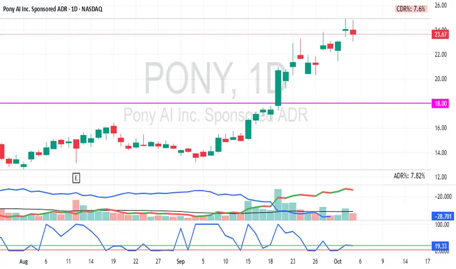 - "Dynamic Background Coloring": CDR% label background changes color based on its relation to ADR%—light green for low volatility (< low threshold), light blue for neutral (between thresholds), and light red for high volatility (> high threshold). This helps quickly spot expansion or contraction in daily moves.