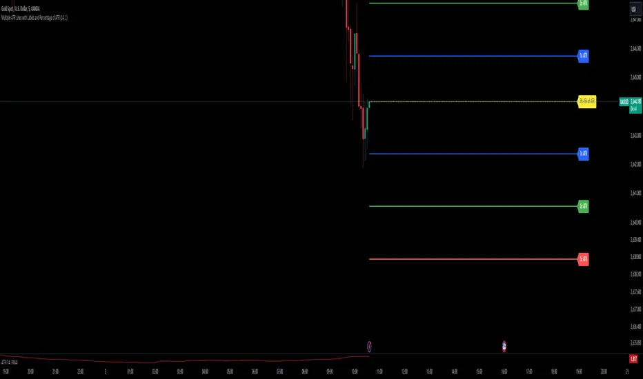 Labels: Each line is labeled with its respective ATR multiple (1x ATR, 2x ATR, 3x ATR), and the current price line shows the percentage of the ATR traveled.